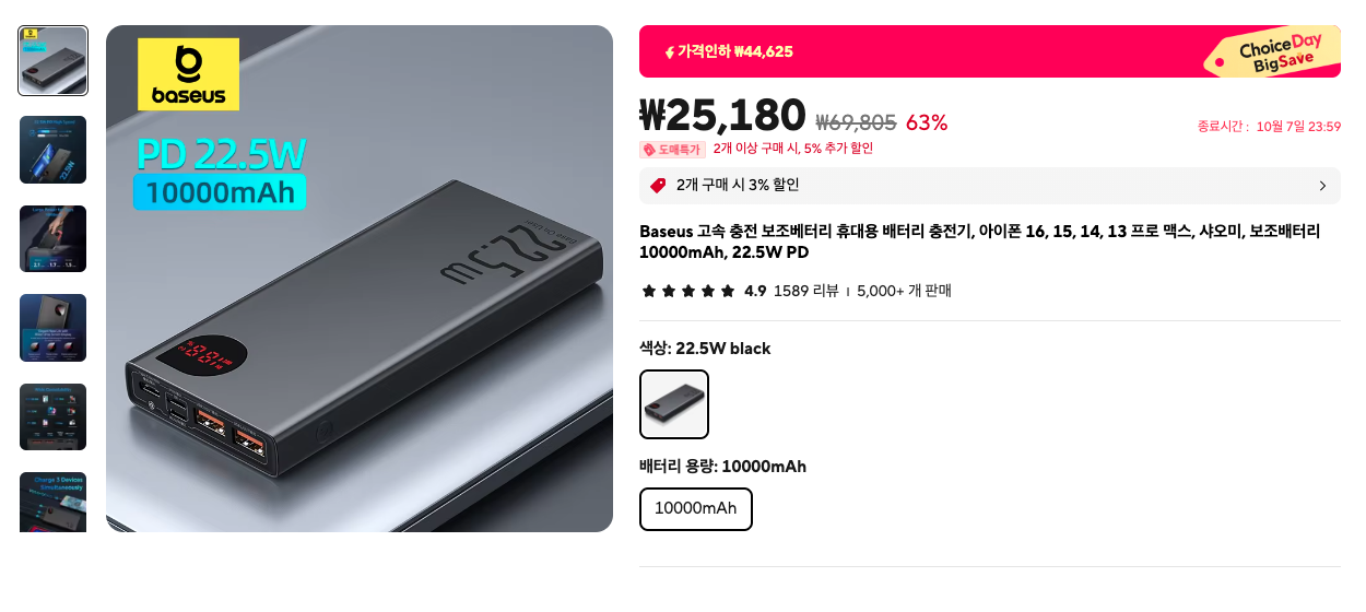 2) Baseus 보조 배터리(사진을 클릭하면 제품 보기로~)