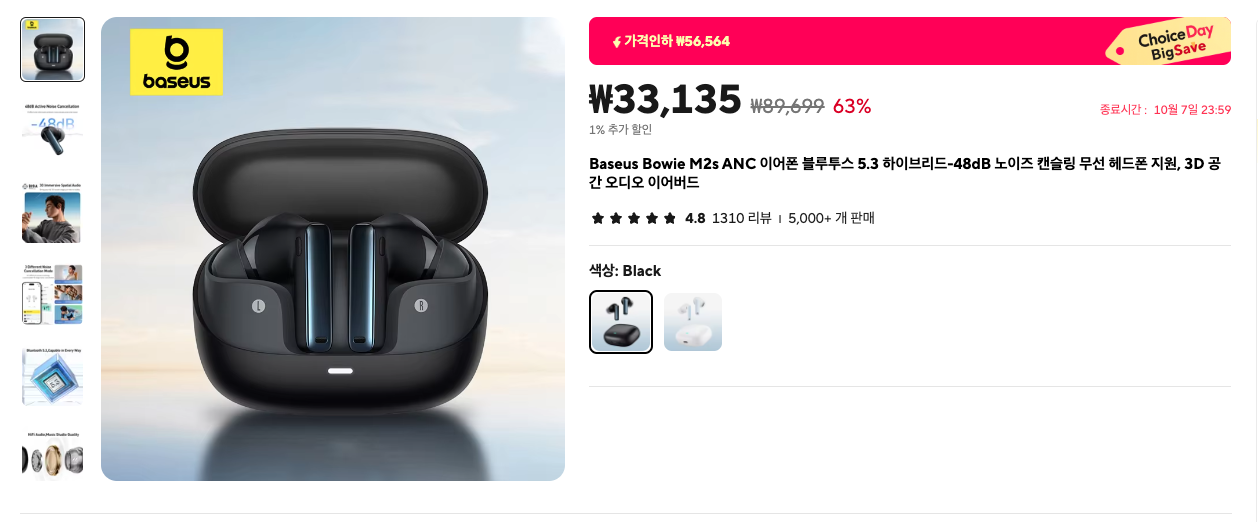 4) Baseus 무선 이어폰(사진을 클릭하면 제품 보기로~)