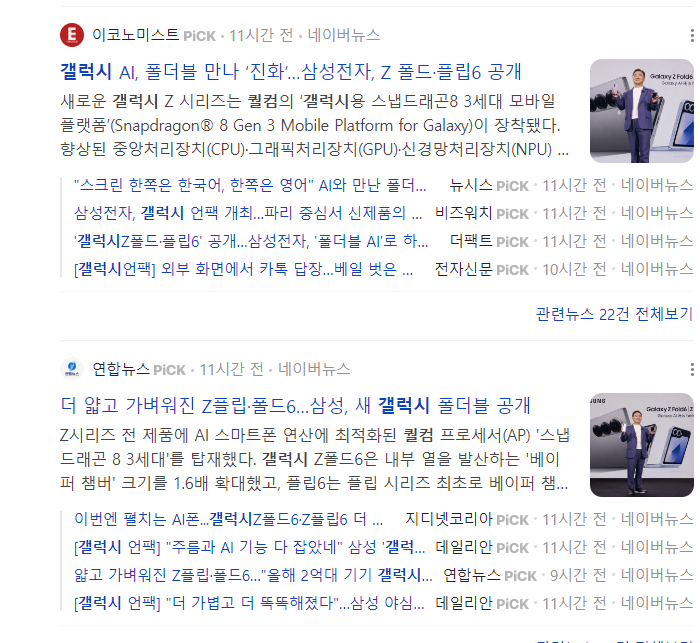 오늘 한국의 신문 기사에 갤럭시 폴더블 시리즈에 퀄컴 스냅드레곤 8gen 3를 사용한다고 나왔는데