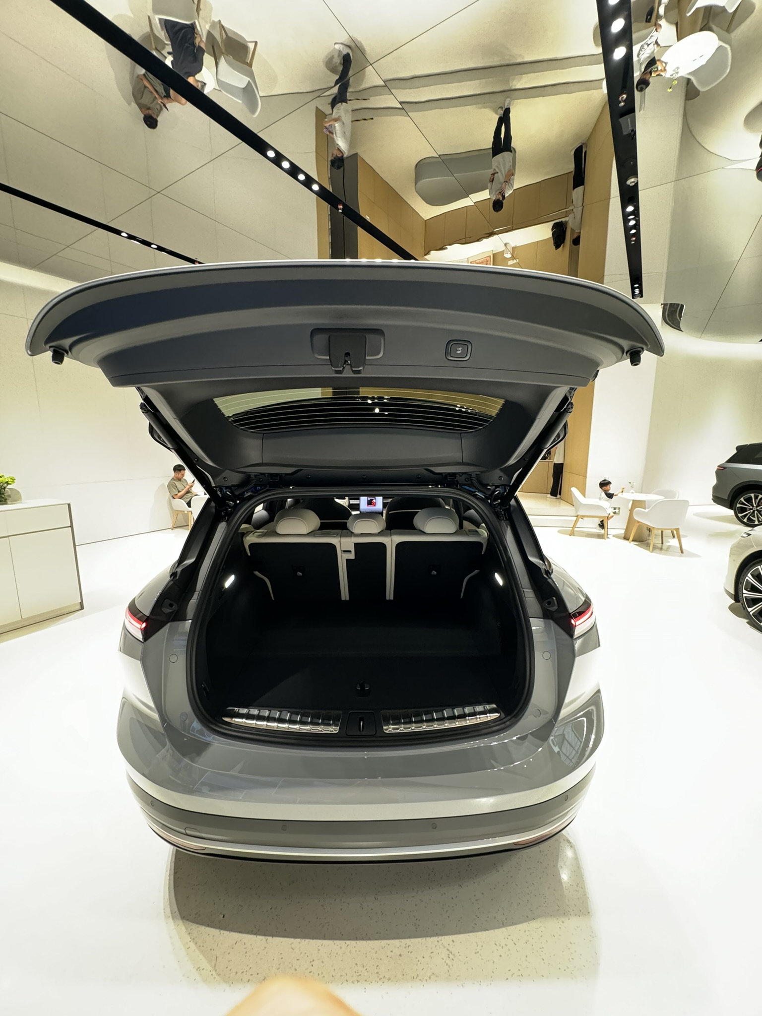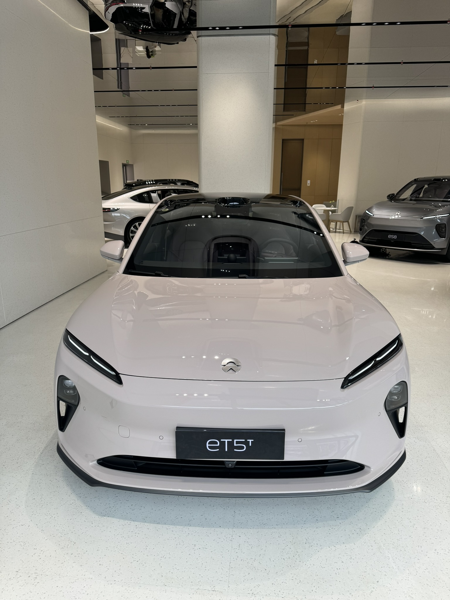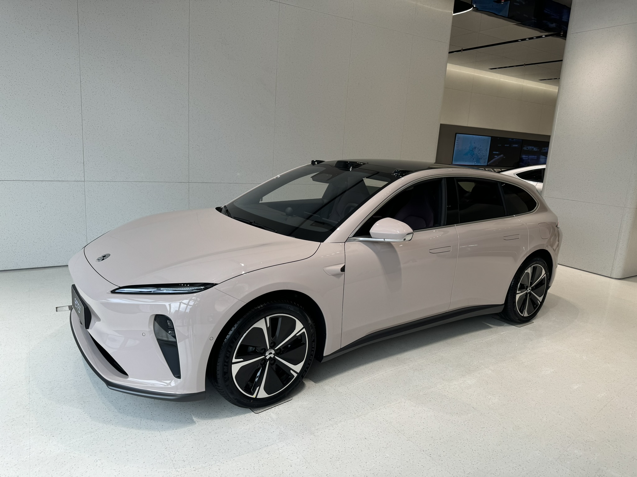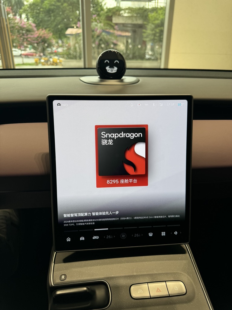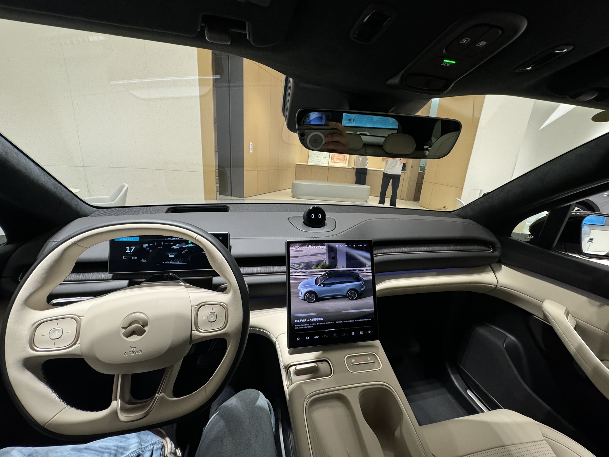 가장 먼저 눈에 들어온 차량은 Nio의 웨건 스타일 모델, ET5T였습니다. 이 차량은 전통적인 웨건 디자인에 미래지향적인 요소를 결합하여 독특한 외관을 자랑합니다. ET5T의 내부에는 퀄컴 스냅드래곤 마크가 prominently display되어 있었는데, 이를 통해 전기차가 단순한 이동 수단을 넘어 하나의 전기 디바이스로 발전하고 있음을 느낄 수 있었습니다.