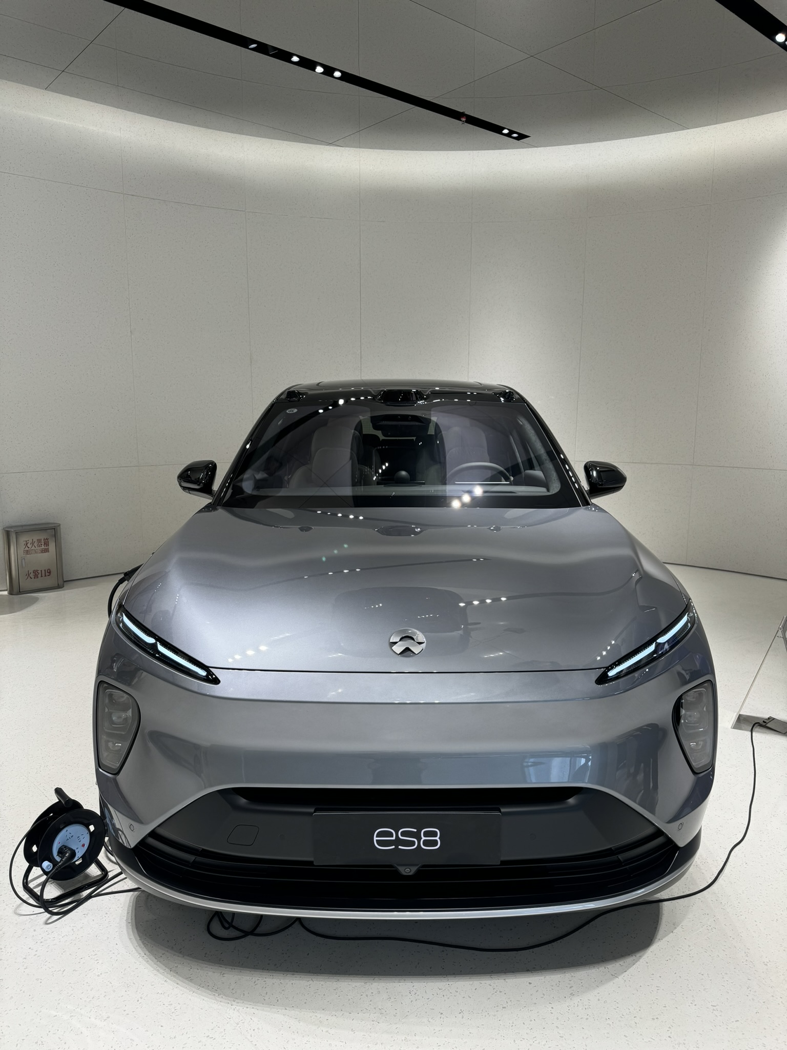 네 번째로 소개할 차량은 Nio의 대형 SUV 모델, ES8입니다. ES8은 넓은 내부 공간과 뛰어난 성능으로 많은 관심을 받고 있는 모델입니다. 이 차량은 7인승으로, 가족 단위의 고객들에게 인기가 많습니다. 외관은 강인하면서도 세련된 디자인을 자랑하며, 내부는 고급 소재로 마감되어 있어 고급스러운 분위기를 자아냅니다.