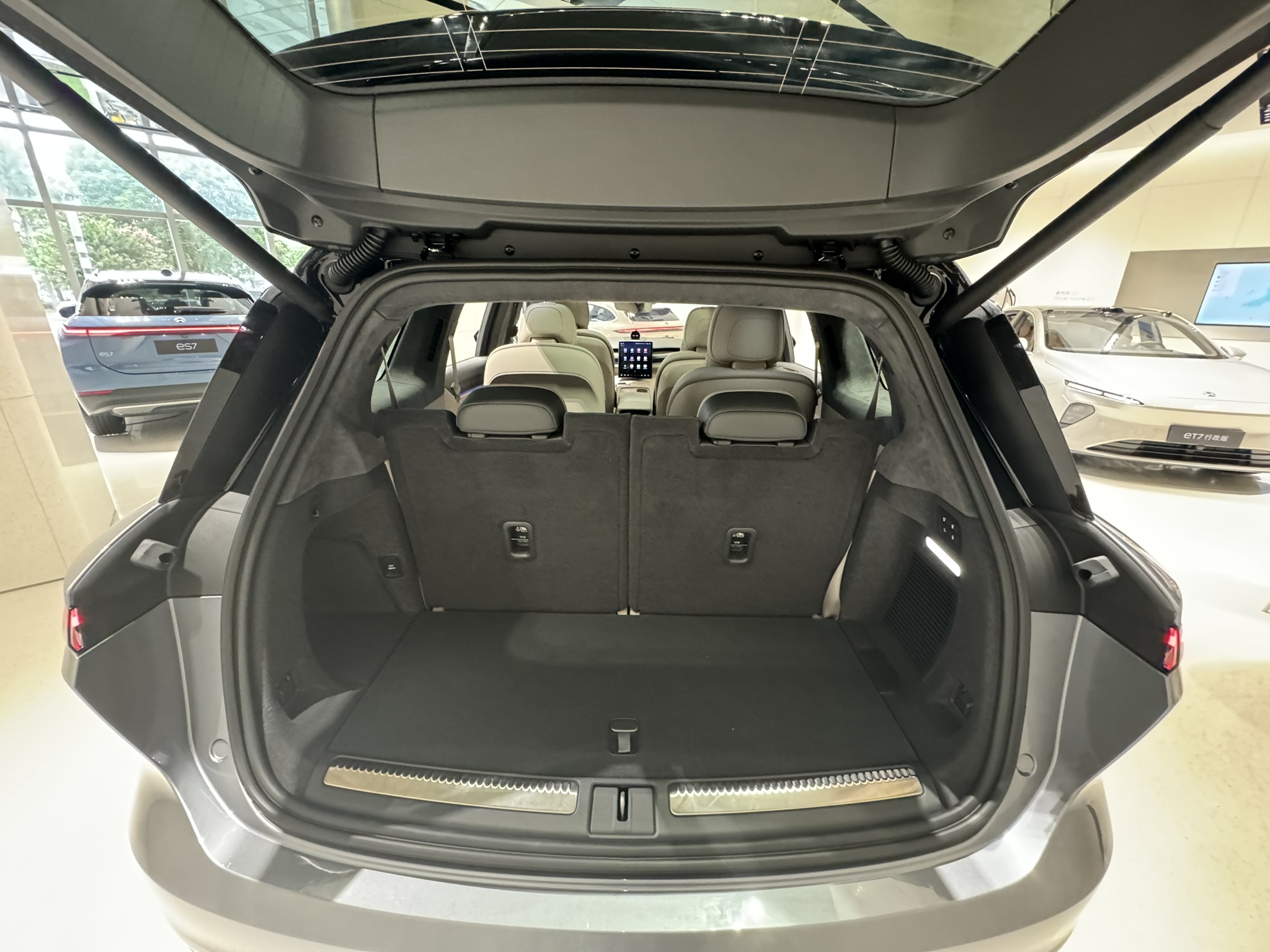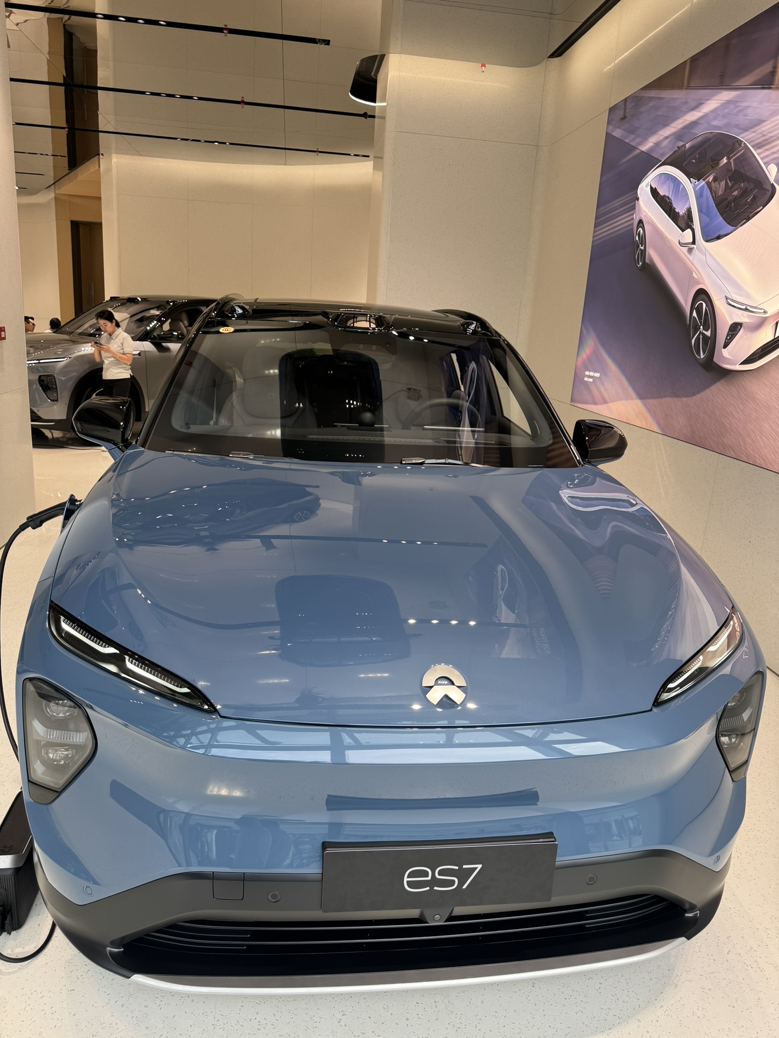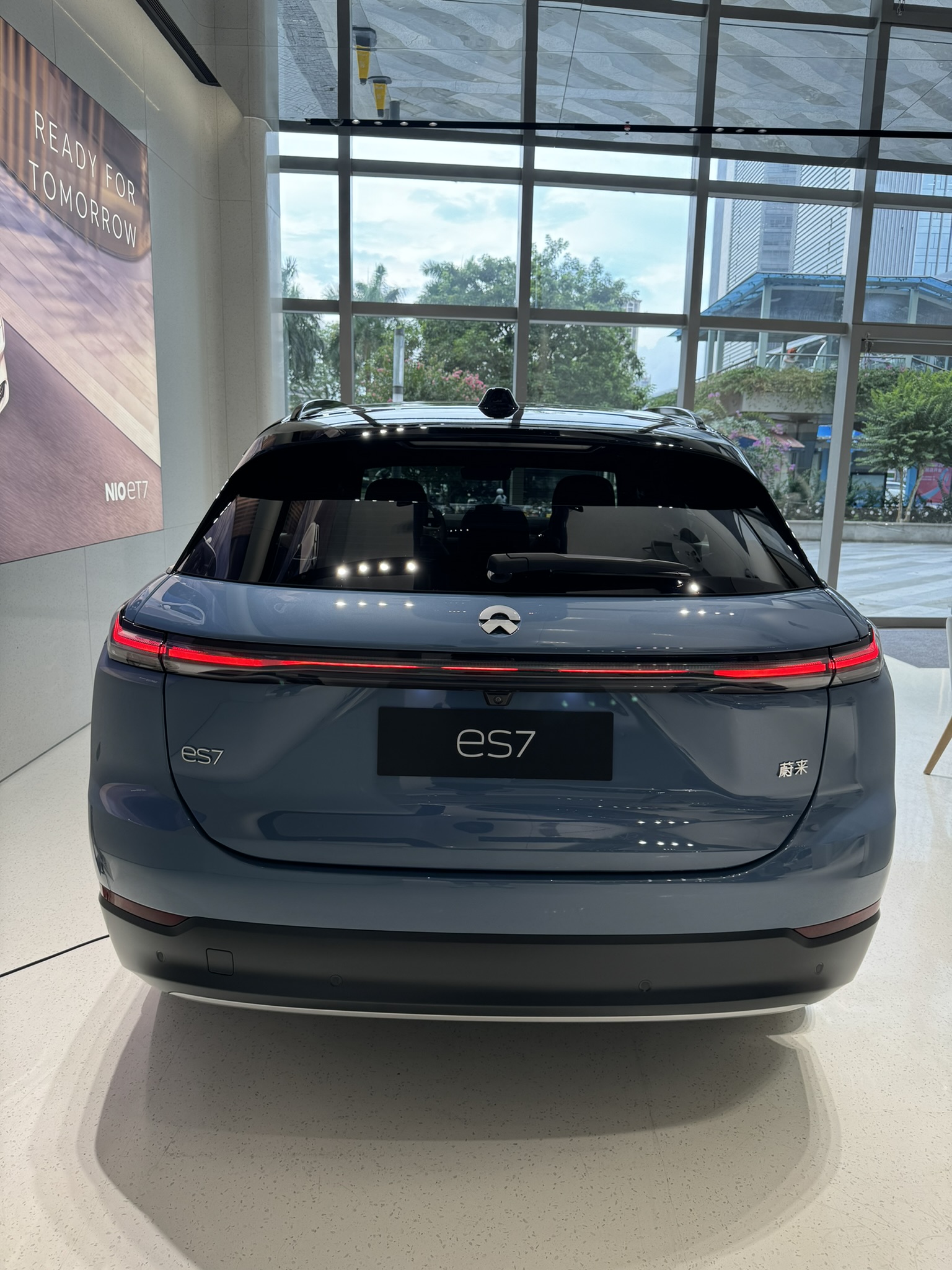 마지막으로 소개할 차량은 Nio의 최신 SUV 모델, ES7입니다. ES7은 최신 기술과 세련된 디자인이 결합된 모델로, Nio의 기술력을 잘 보여줍니다. 외관은 유려한 곡선과 강인한 라인이 돋보이며, 내부는 고급 소재로 마감되어 있어 럭셔리한 분위기를 자아냅니다.