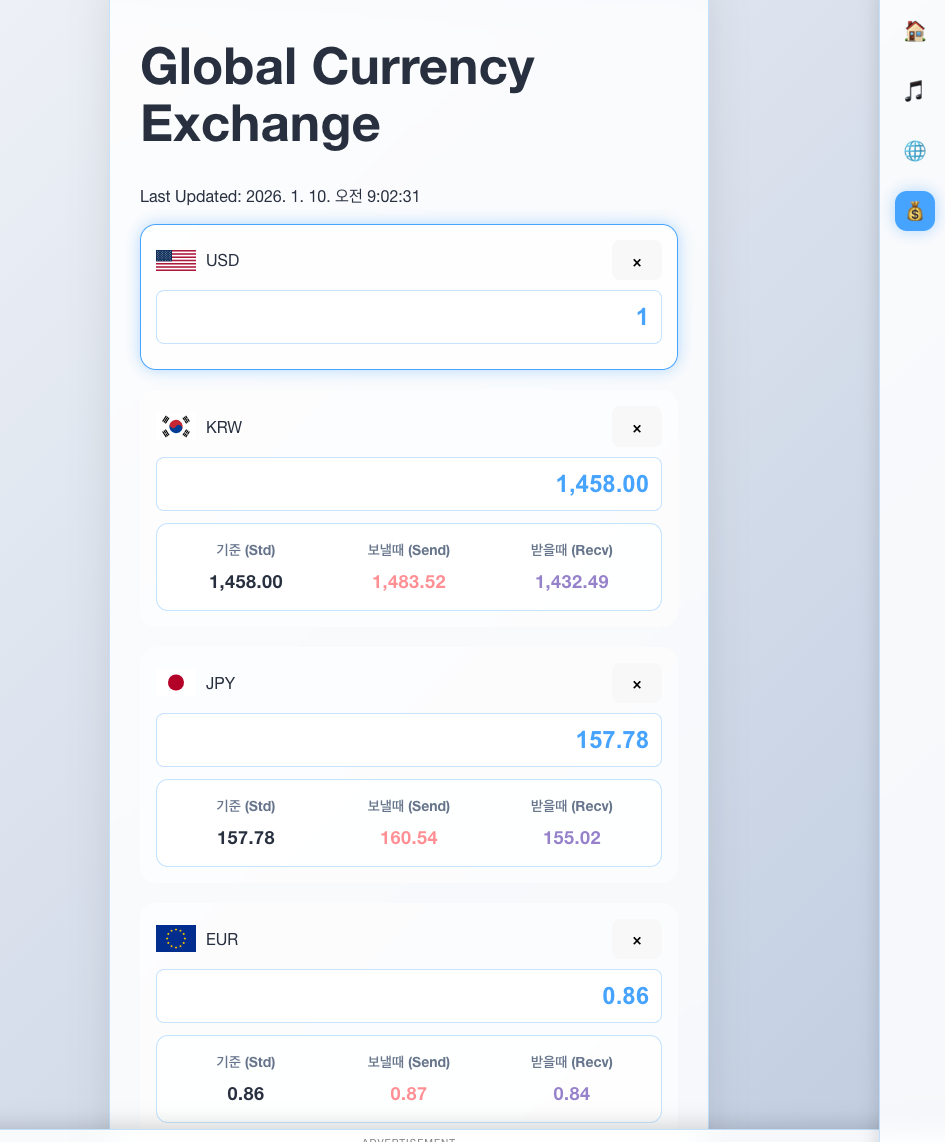 - 즉시 실시간 환율이 반영된 결과가 출력됩니다.