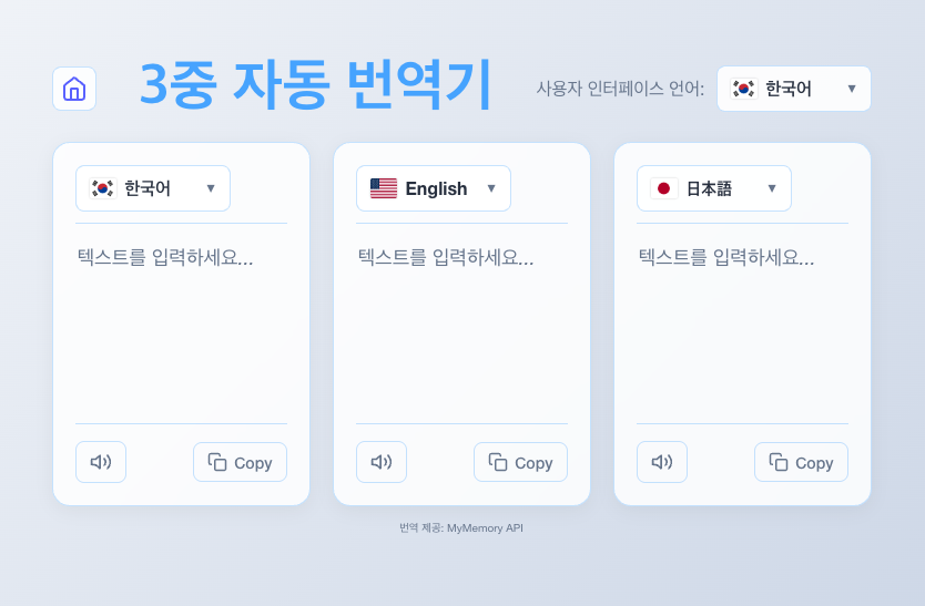 - 한국어로 입력하면 → 영어, 일본어, 중국어로 바로 번역