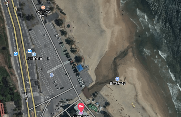 설악비치의 주차 공간은 넓지만, 휴가철이나 주말에는 금방 차게 됩니다.