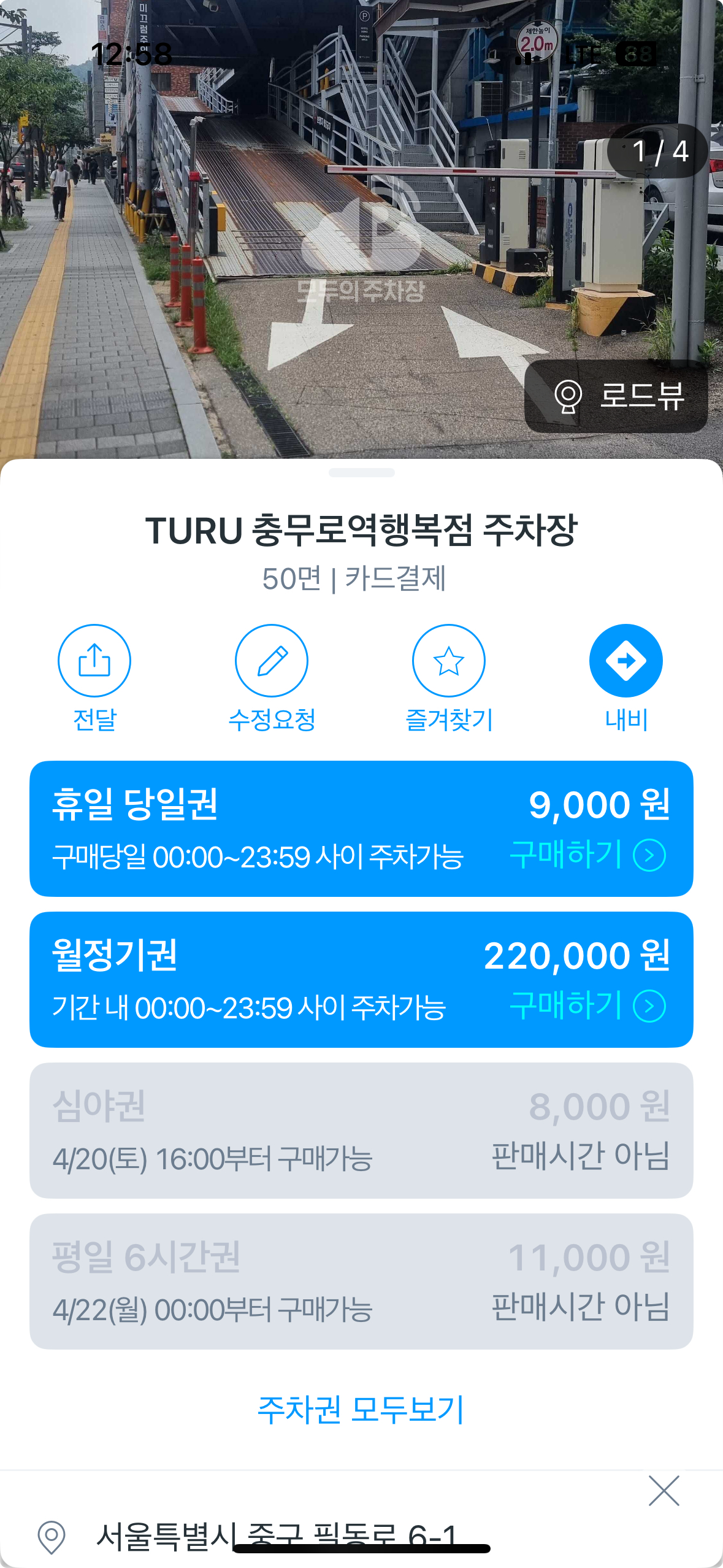 앱 (모두의 주차장)을 통해서 TURU 충무로역 행복점 주차장