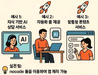 - nocode 툴 (Bubble, Glide, Softr 등)을 활용하면 비개발자도 앱 제작 가능
