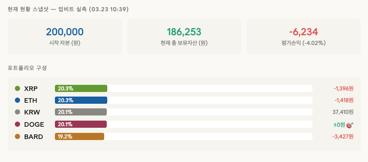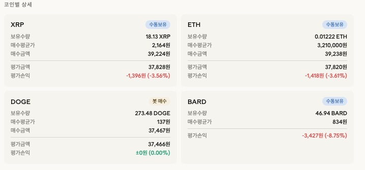 - 보유 코인: ETH, XRP, BARD 등