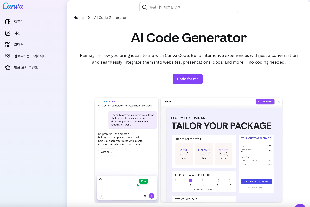 Canva Code의 주요 기능 정리