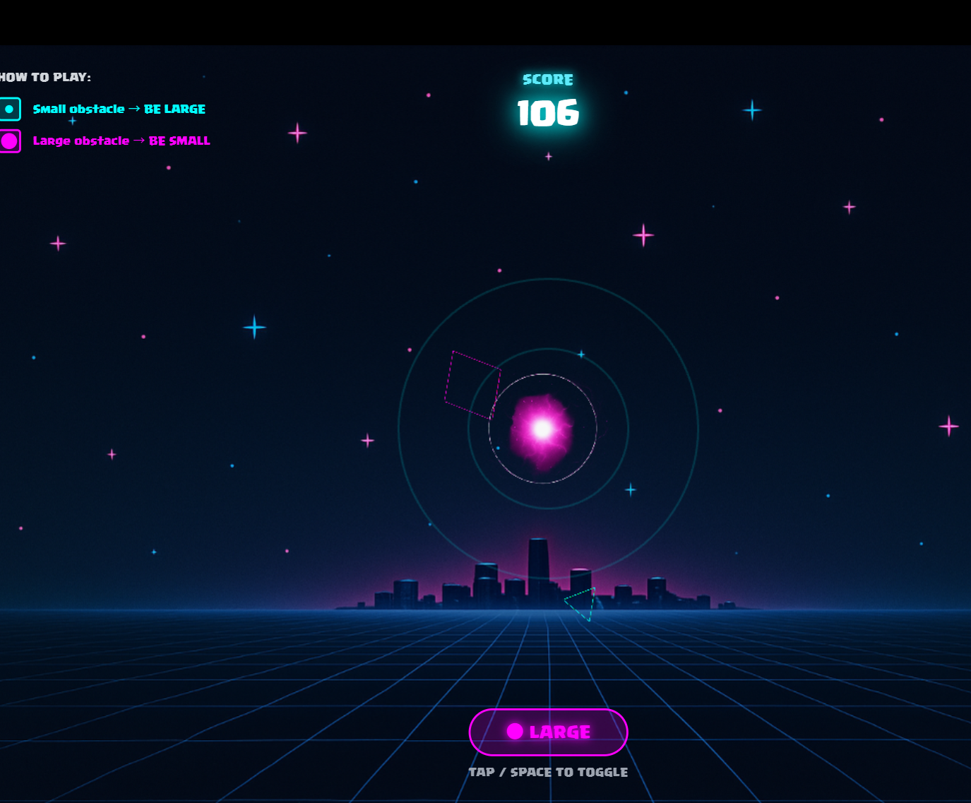 Neon Pulse는 화면 중앙의 빛나는 네온 오브(orb) 를 조작해 사방에서 날아오는 장애물을 피하는 게임입니다.